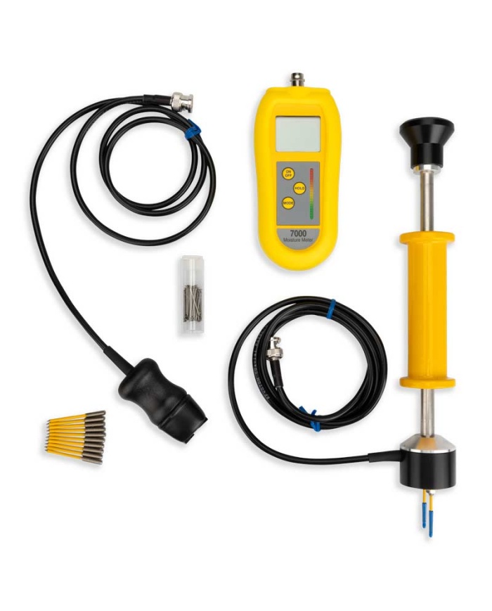 Designad speciellt för byggbranschen och baserad på 7000 fuktmätare, är detta fuktmätarsats en komplett lösning för att mäta fukt och fukt i en mängd olika byggmaterial. Detta kit representerar utmärkt valuta för pengarna eftersom det levereras i en gratis bärväska och innehåller en två-stifts sond, två förpackningar med stift och ett gratis skyddshölje.