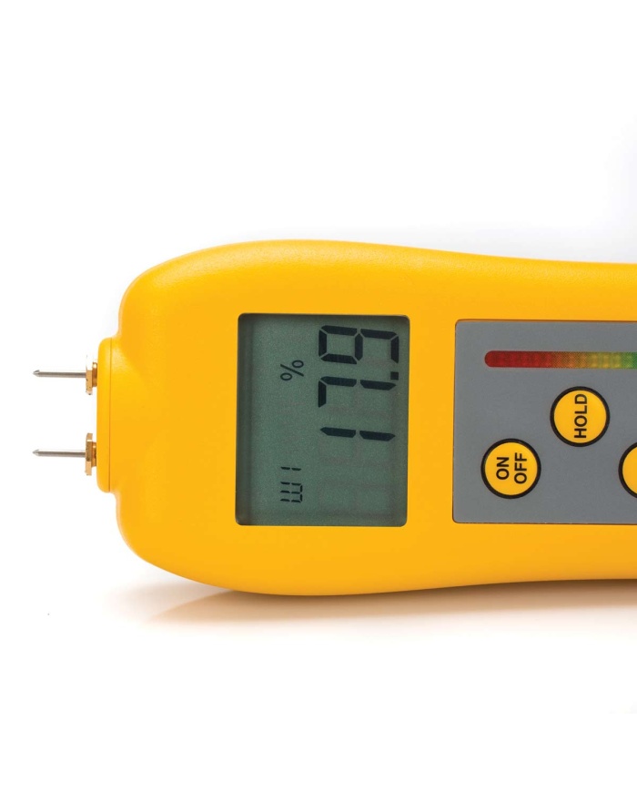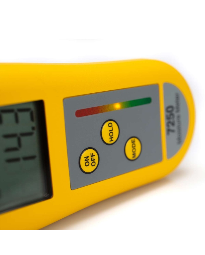 Omedelbart veta om ditt material har en låg, medelhög eller hög nivå av fukt med 7250 Fuktmätarens färgkodade indikator. Vågen lyser grönt för “OK”, gult för “VARNING” eller rött för “FUKTIG”.