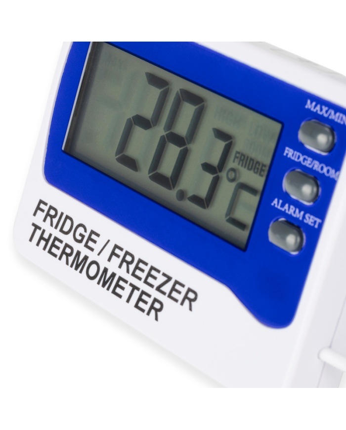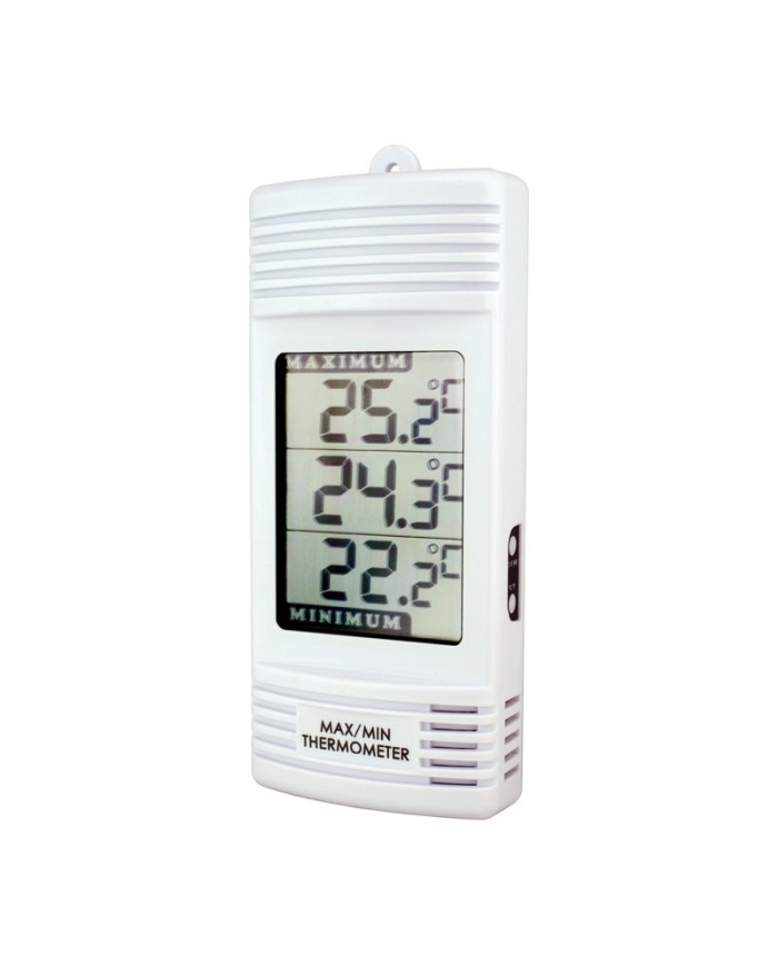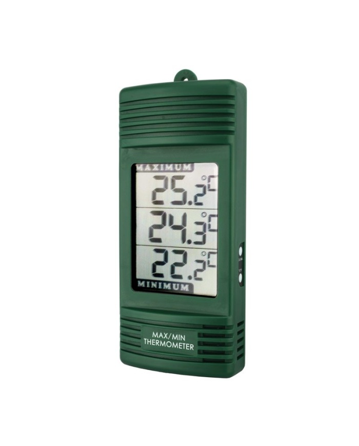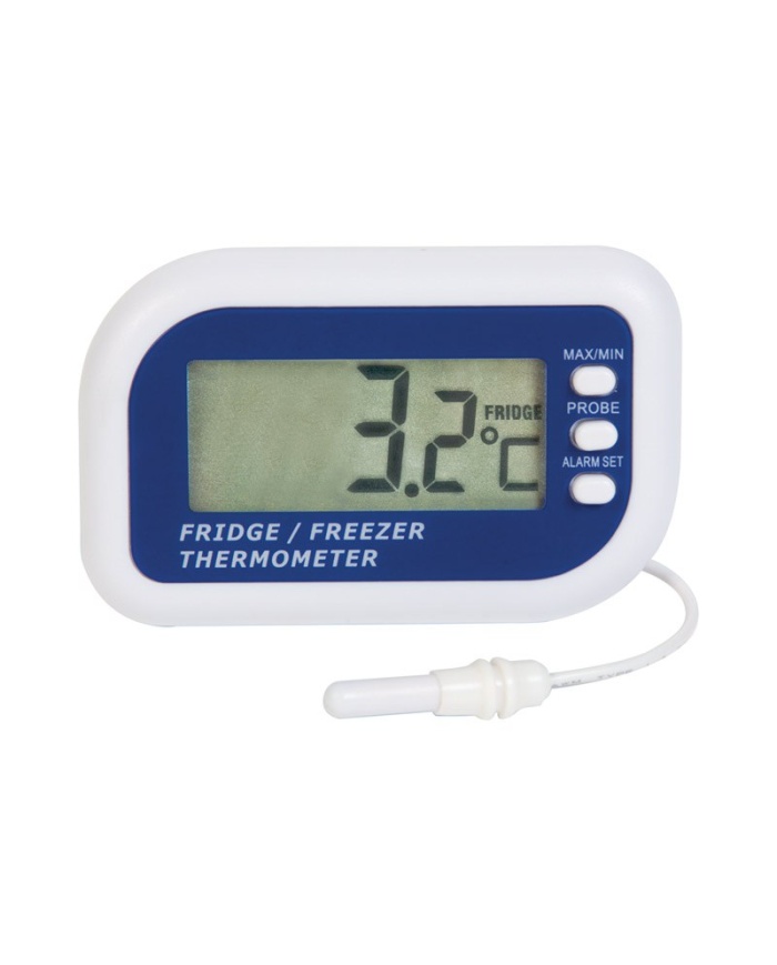 ETI Digital termometer med samtidig visning av intern och extern givare på sladd. Visning av Max/Min och programmerbart larm.