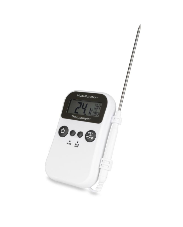 ETI Digital trådlös termometer med 4st temperaturkanaler. Levereras med 3 insticksgivare och 1 ugnsgivare. WiFi och Bluetooth, Cloud-uppkoppling med larmfunktion och app.
