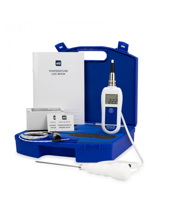 ETI Catering kit i väska för professionellt bruk med Therma 20® termometer, 2 st termistorgivare, rengöringsservetter och loggbok