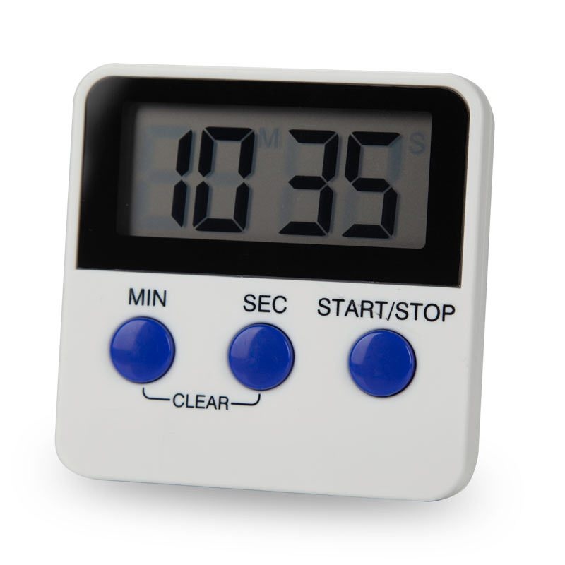 Denna nedräkning/upp-timer innehåller ett ljudlarm som är högre än genomsnittet 70 decibel. Timern är fullt programmerbar, så att användaren kan ställa in tiden upp till 99 minuter och 59 sekunder.
