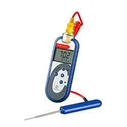 | DenC48C Industriell termometerär en enkel industriell termometer med typ K termoelement för tillförlitlig och exakt temperaturmätning. Den har en lättanvänd knappsats och stor LCD-skärm. | |