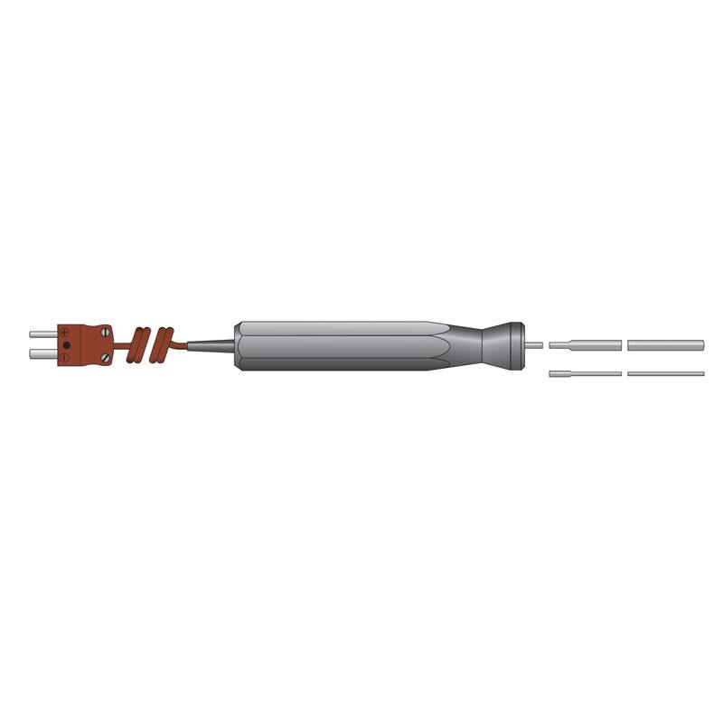 ETI Givare, termoelement typ T, för mätning mellan kartonger Ø4,5 x 130mm sexkantigt handtag 1 meter spiralkabel