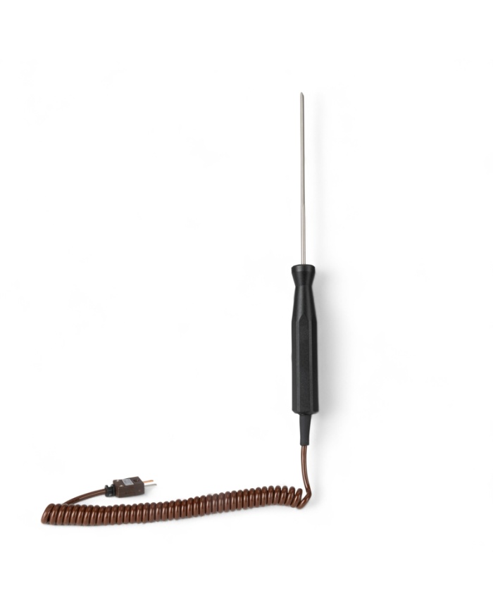 Denna robusta sond, med en diameter på Ø4,5 mm och en 1 m ledning, är utformad för hållbarhet och lång livslängd, vilket säkerställer att den kan motstå påfrestningarna vid daglig användning inom livsmedelsindustrin. Den läser av temperaturer mellan -75 och 250 °C. Typ K har en noggrannhet på ±0,5 °C (0 °C till 100 °C) och för typ T är den ±0,2 °C, -20 °C till 70 °C.