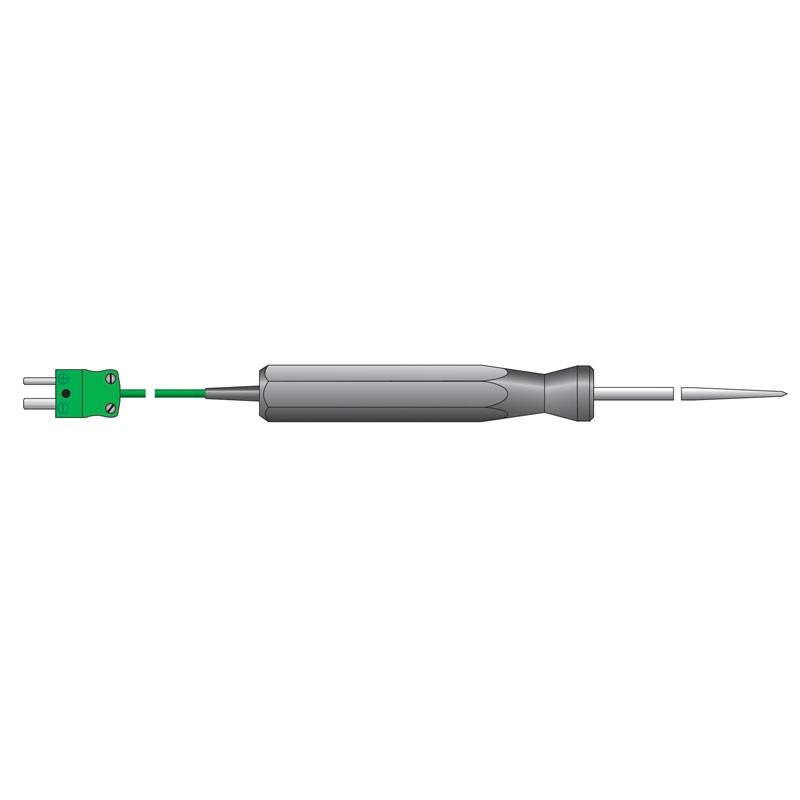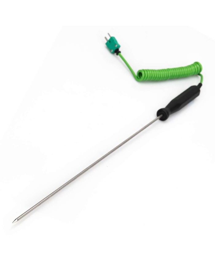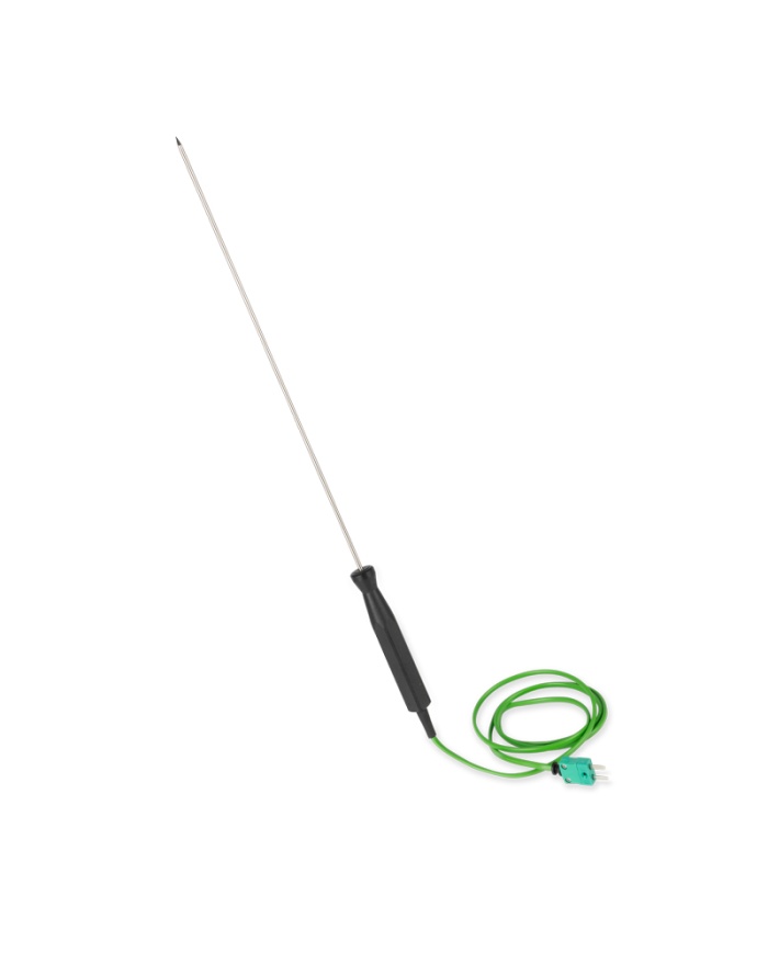 Idealisk för mätning av temperatur i en mängd olika applikationer, inklusive vätskor och halvfasta ämnen. Den har en sonddiameter på 3,3 mm, sondlängden är 300 mm. Svarstid mindre än två sekunder. Maximal sondtemperatur 250 °C. Kan monteras på alla ETI-termometrar med ett termoelementuttag.