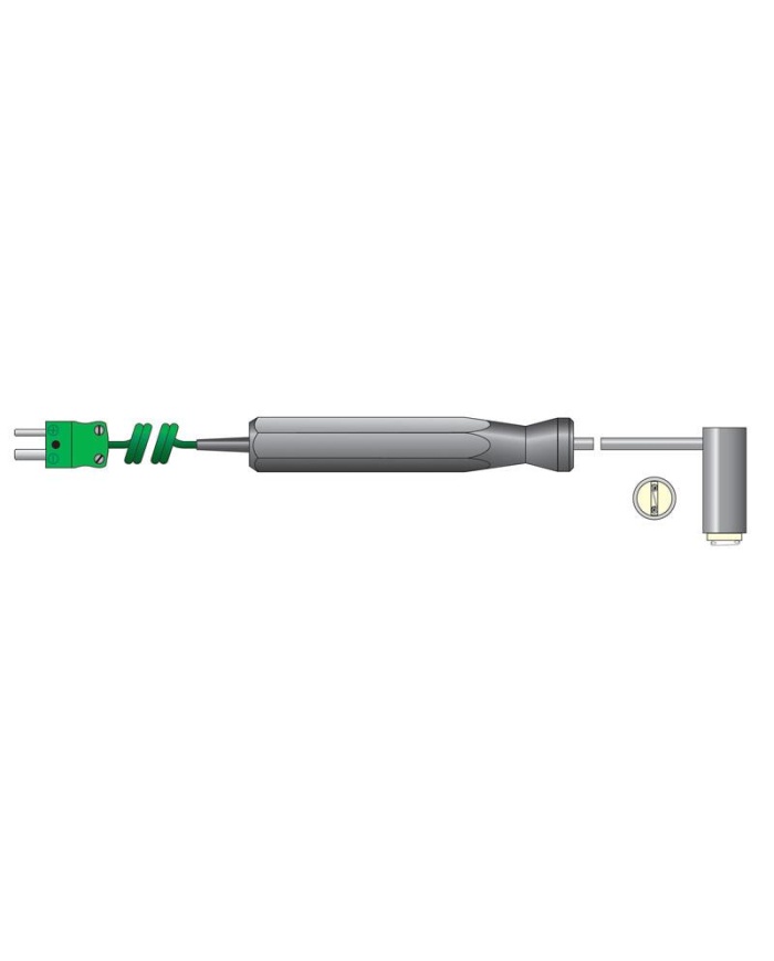 Högtemperatursond – Denna tunga ytsond med hög temperatur är idealisk för att mäta temperaturen på galler, värmeplattor och andra applikationer som kräver ett mätområde med hög temperatur. Svarstiden är mindre än en sekund. Sondens mått är 12 mm i diameter och 130 mm i längd. Sondtemperaturområde -100 till 1000 °C. En rätvinklig version finns också, beställningskod 17-123028.