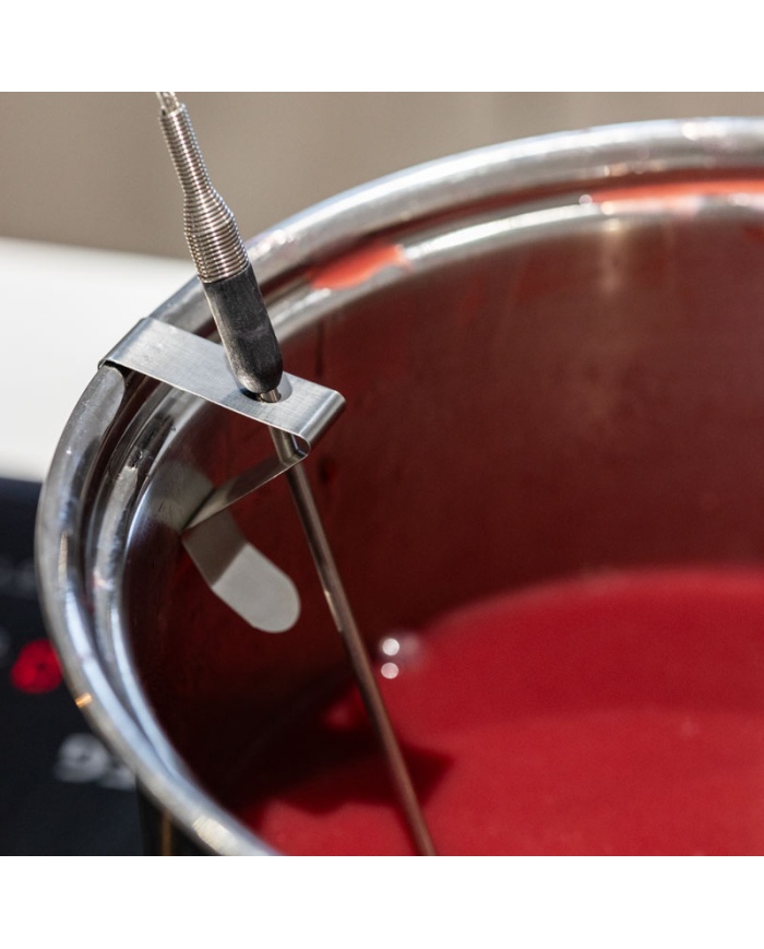 Sondklämmor för termometer – Dessa sondhållare i rostfritt stål klämmer fast på toppen av en kanna eller liknande för att hålla en temperatursond på plats. Två modeller finns tillgängliga, en som accepterar antingen en Ø3 eller Ø3,3 mm sondstam och den andra är utformad för att fungera tillsammans med en bimetalltermometer och accepterar en Ø4 mm sondstam. För att säkerställa maximal noggrannhet vid avläsning bör sonden inte vidröra behållarens botten eller sidor.