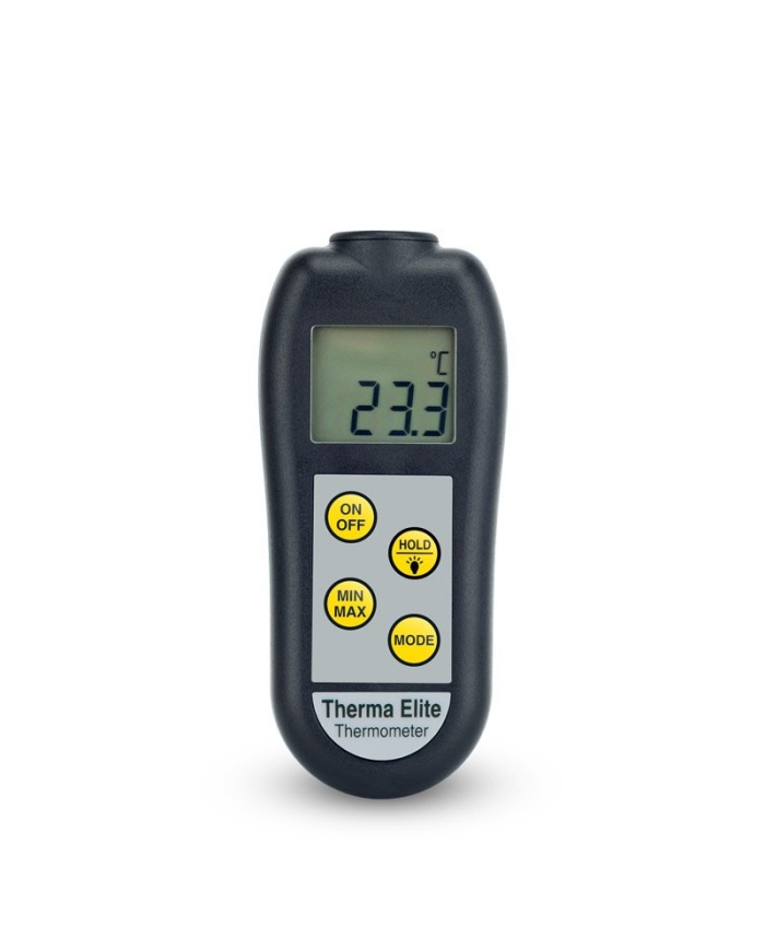 Therma 3 har ett brett temperaturområde från -100 till 1370 °C, vilket gör den idealisk för en mängd olika hårda applikationer. Den lättlästa displayen visar temperaturen med en upplösning på 1 °C. Dessutom gör termometerns hållfunktion det enkelt att registrera temperaturer.
