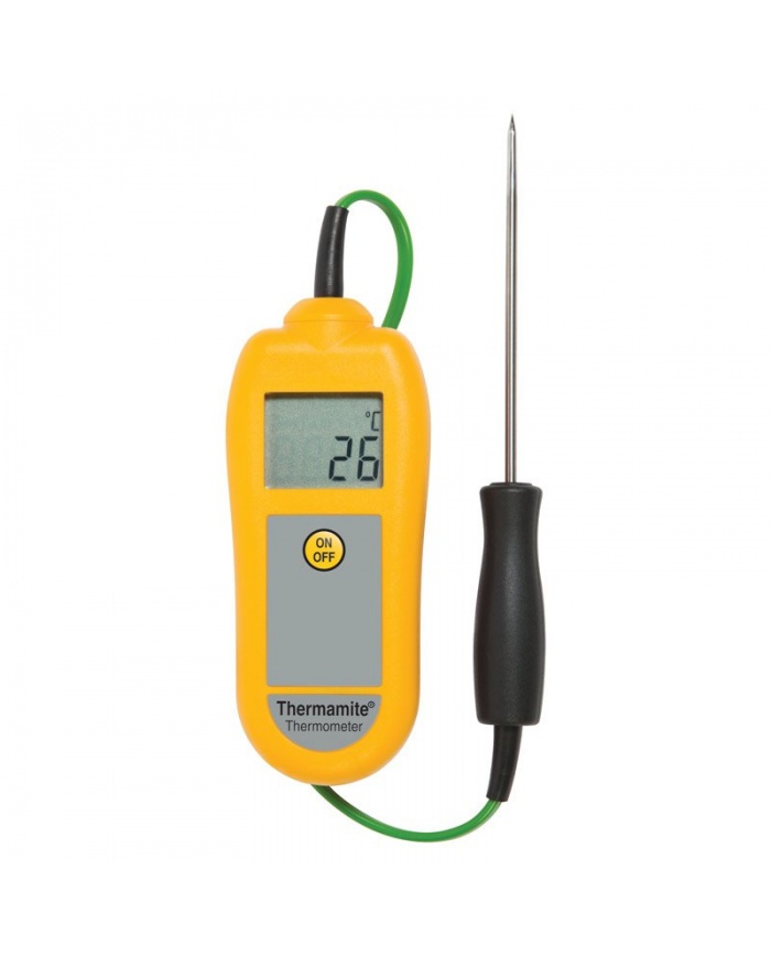Thermamite digitala livsmedelstermometer är en enkel och prisvärd enhet för att ta dagliga temperaturkontroller som en del av HACCP och andra hälso- och säkerhetsprocedurer. Levereras med ett GRATIS spårbart kalibreringscertifikat, du kan vara säker på noggrannheten i dina avläsningar.